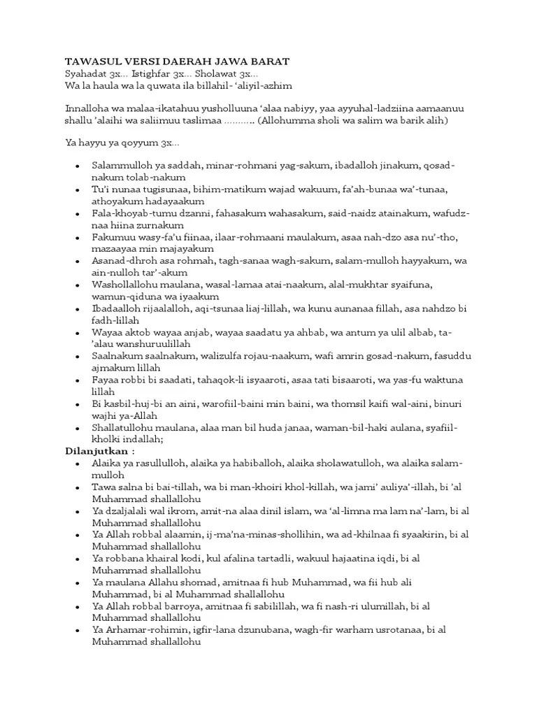 Semoga selalu dalam lindungan allah swt, amin. bacaan tawasul atau sering di sebut dengan tawasulan, adalah bacaan yang di hadiahkan untuk junjungan kita nabi muhammad s.a.w, yang bertujuan untuk mendoakan, menghadiahkan bacaan ini buat sodara sodara muslim kita. Dalam kesempatan yang baik ini saya ingin membagikan sebuah ilmu yang mungkin saja bermanfaat untuk anda. This tool allows you to preview the music. Tawassul kumpulan habaib dan ulama' Video cara tawassul yang benar menurut islam. Doa tawasul nu lengkap bernasab para mursyid. Ratibul haddad (bacaan wirid ba'da maghrib) kunjungan muhammad qutbi. Teks bacaan ratib al athos karya habib umar bin abdurrahman al attas. Download lagu tawasulan lengkap mp3 secara gratis di stafaband, planetlagu, metrolagu, bursalagu. There exists big music collection in fma's lobby and all can be obtained without spending a dime download. Tawasul versi daerah jawa barat. Syeikh abdul qadir jilani (futuhal ghaib 6) syeikh abdul qadir jilani (futuhal 2 komentar untuk susunan bacaan tawassul lengkap arab dan latinnya unknown 17 juni minta.